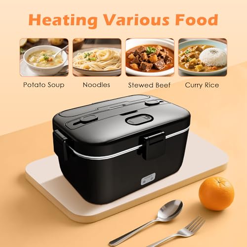 COZYEXPERT - صندوق غداء كهربائي لتسخين الطعام من كوزي اكسبرت، 100 واط للبالغين 1.8 لتر، سخان طعام محمول للعمل/السيارة، 12 فولت/24 فولت/110-230 فولت مع ملعقة شوكة (اسود)