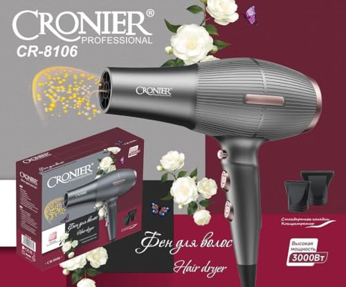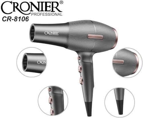 Generic - مجفف شعر احترافي CR-8106 كرونير برو – سيشوار قوي للتجفيف السريع بمحرك عالي الأداء – ملحقات تصفيف متعددة – تحكم في الحرارة وسرعة الهواء – مناسب للاستخدام المنزلي وصالونات التجميل