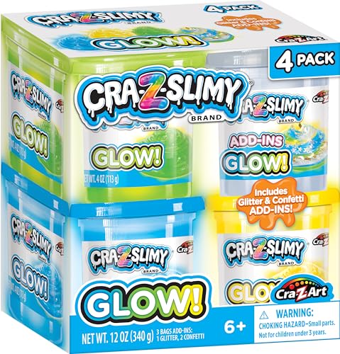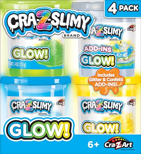 Cra-Z-Art - كرا-زيد-ارت 4 عبوات متوهجة مع قصاصات ورقية وقصاصات ورقية من كرا-زد-سلايمي