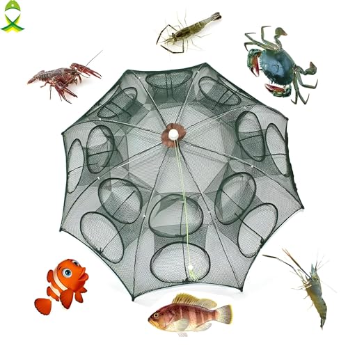 Generic - مصيدة السلطعون تتميز بشبكة صيد قابلة للطي محمولة وقفص صيد يدوي، مع حبل من النايلون لصيد الطعوم الصغيرة والأسماك والثعابين البحرية وسرطان البحر والكركند والأسماك الصغيرة والروبيان