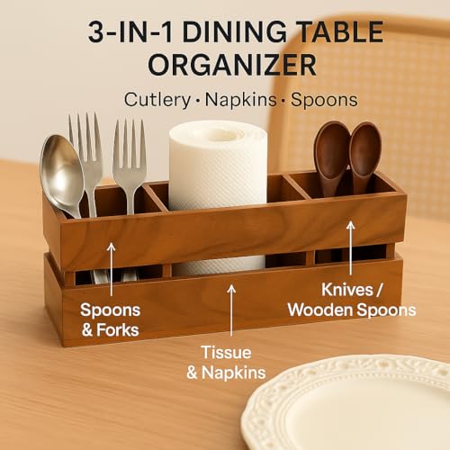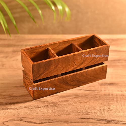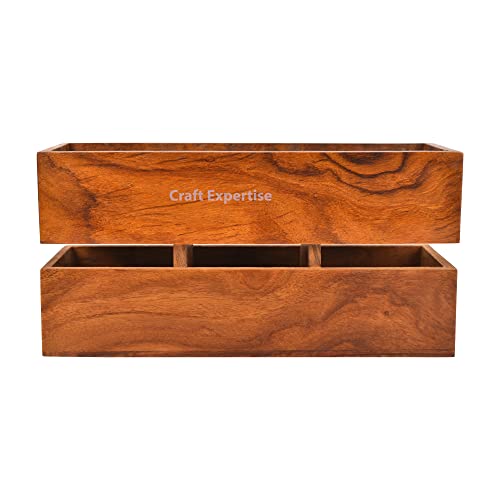 Craft Expertise - حامل ادوات مائدة خشبي متعدد الاغراض مكون من 3 اقسام بلون بني مقاس 9 انش