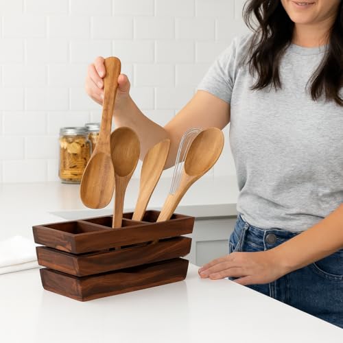 - منظم فعال: يحافظ على الملاعق الخشبية وأدوات المطبخ الأخرى منظمة بشكل أنيق وفي متناول اليد.