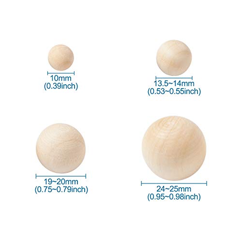 Craftdady - كرات خشب دائرية طبيعية غير مصقولة من كرافت دادي، كرات ديكور كرافت متنوعة من الخشب الصلب بدون فتحات لمشاريع الاعمال اليدوية والاكسسوار، 90 قطعة مقاس 10 ملم/13.5-14 ملم/19-20 ملم/24-25 ملم