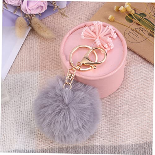 CRAFTHROU - CRAFTHROU 1 Pcs Ball Pendant Metal Keychain Car Key Holder Metal Keychain Girl Keychain Plush Keychain Black Pom Poms Plush Keychain Fluffy Keychain Miss Makeup