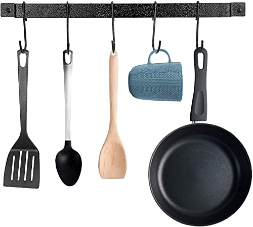 Craftize Mstore - رف مطبخ حديد بحامل يثبت على الحائط من كرافتيز ام ستور، حامل أواني وأغطية، 43 سم مع 15 خطافًا على شكل S، لون أسود (ريترو)، أرفف معلقة
