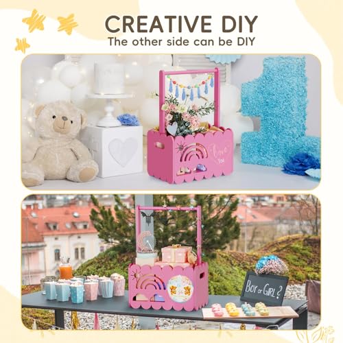 Generic - خزانة صندوقية خشبي لللأولاد والبنات لحفلات استقبال المولود الجديد مناسبة لفترة الحمل للوالدين الجدد (لون وردي)