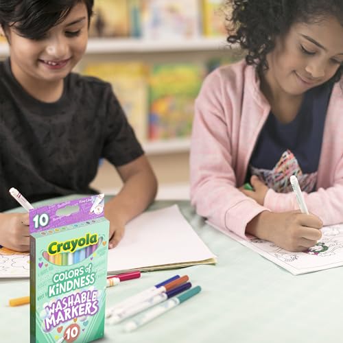 Crayola - مجموعة أقلام ماركر دقيقة قابلة للغسل للخطوط الدقيقة من كرايولا - ألوان متنوعة | ألوان اللطف تعبر عن المشاعر الطيبة | مثالية للأطفال من سن 3 سنوات فما فوق (عبوة من 10 قطع)