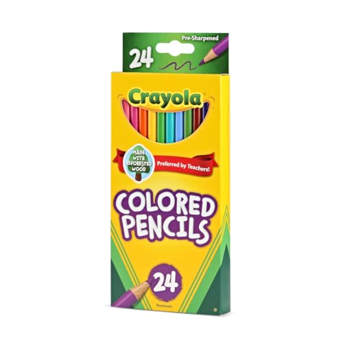 - أقلام ملونة من كرايولا: تحتوي مجموعة الألوان الخشبية هذه على 24 لون خشب من كرايولا مشحوذ مسبقًا بألوان كلاسيكية.