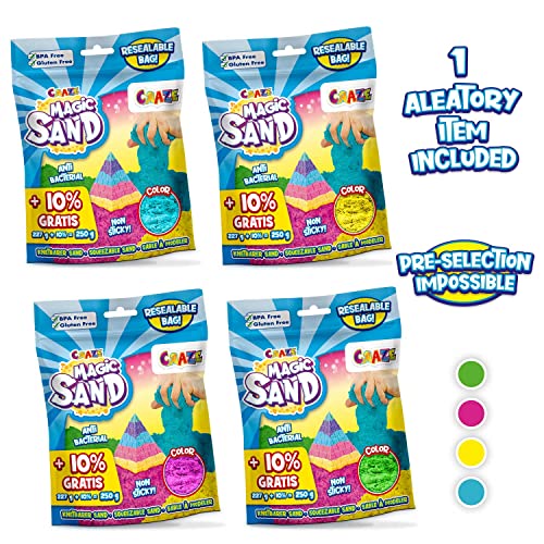 - تحتوي عبوة سلايم ماجيك ساند من كريز على 250 جرام من الرمل السحري الأصلي، متوفرة بأحد أربعة ألوان رائعة (أخضر وأزرق ووردي ورملي). بفضل الفتحة الصغيرة الموجودة في العبوة، يمكنك رؤية اللون مباشرة، لا يمكن اختيار اللون، لذا اترك الأمر كمفاجأة!