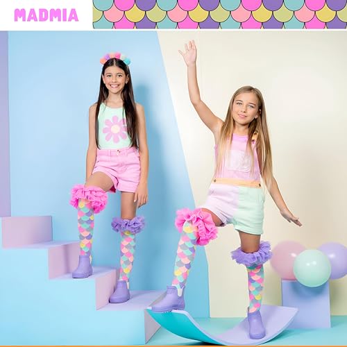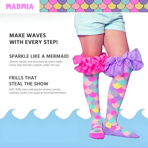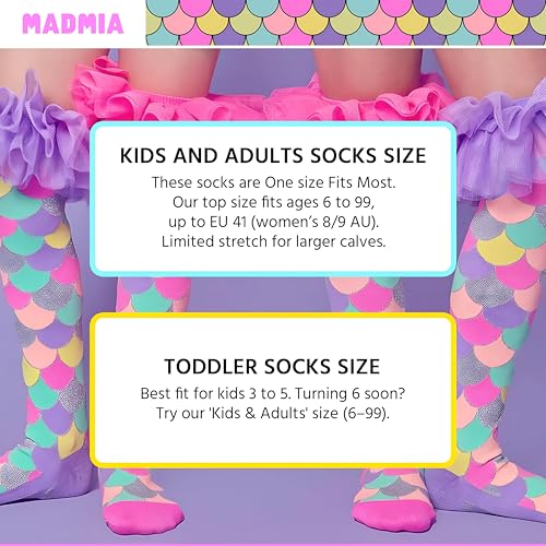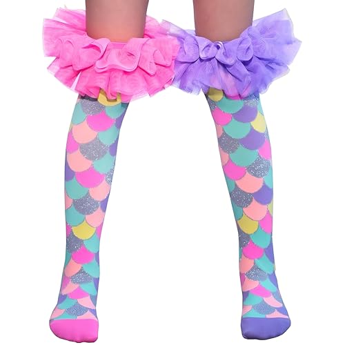 Generic - جوارب كريزي سوكس - جوارب جريئة ومشرقة بكشكشة حورية البحر بطول الركبة لجميع الاعمار، مثالية للايام المرحة والحفلات التنكرية والنمط غير التقليدي