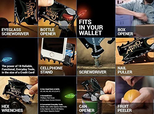 Creatif Ventures - اداة واليت نينجا متعددة الوظائف 18 في 1 بحجم كرت الائتمان للجيب من كرييتف فينتشورز، اسود