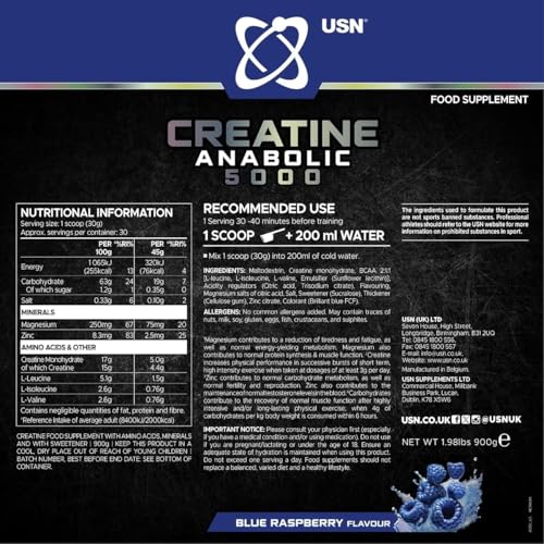 NutraNova Labs - مكمل غذائي كرياتين انابوليك 5000 لدعم نمو العضلات والتعافي، بنكهة التوت الأزرق، 30 حصة، 900 جم