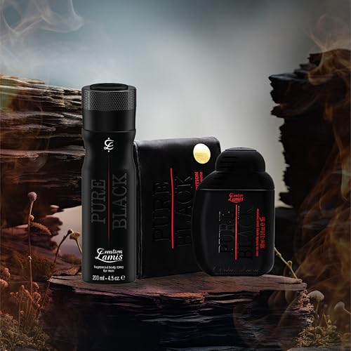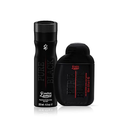 Creation Lamis - مجموعة هدايا بيور بلاك للرجال او دو تواليت 100 مل + بخاخ للجسم 200 هدية عطر تدوم طويلا من كرياشن لاميس