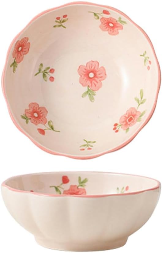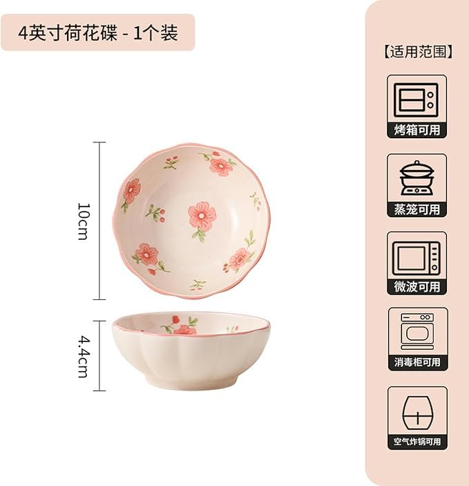 Generic - أواني مائدة سيراميك مبتكرة ومخصص بتصميم زهرة الخوخ طقم أواني مائدة مكون من بولة للشوربة مقاس 15 سم وطبق سمك مقاس 10 سم مناسب للاستخدام المنزلي والحفلات، 2 قطعة، طبق مقاس 10 سم