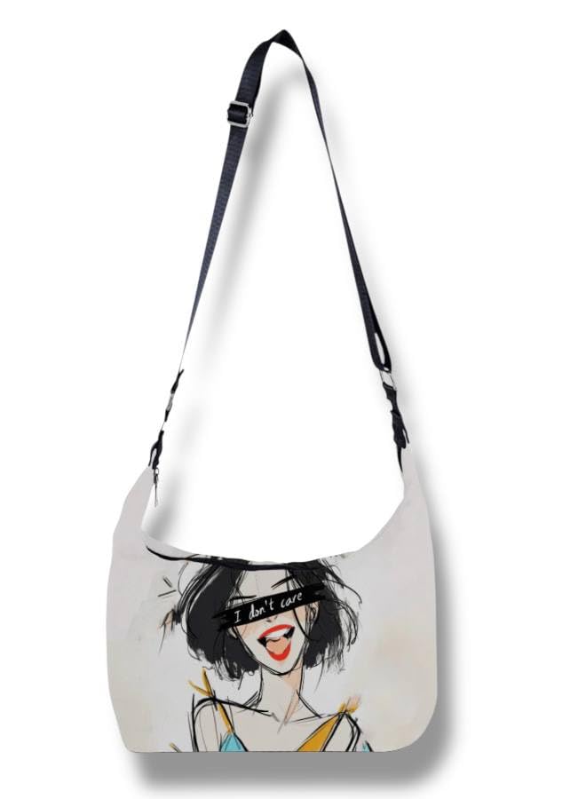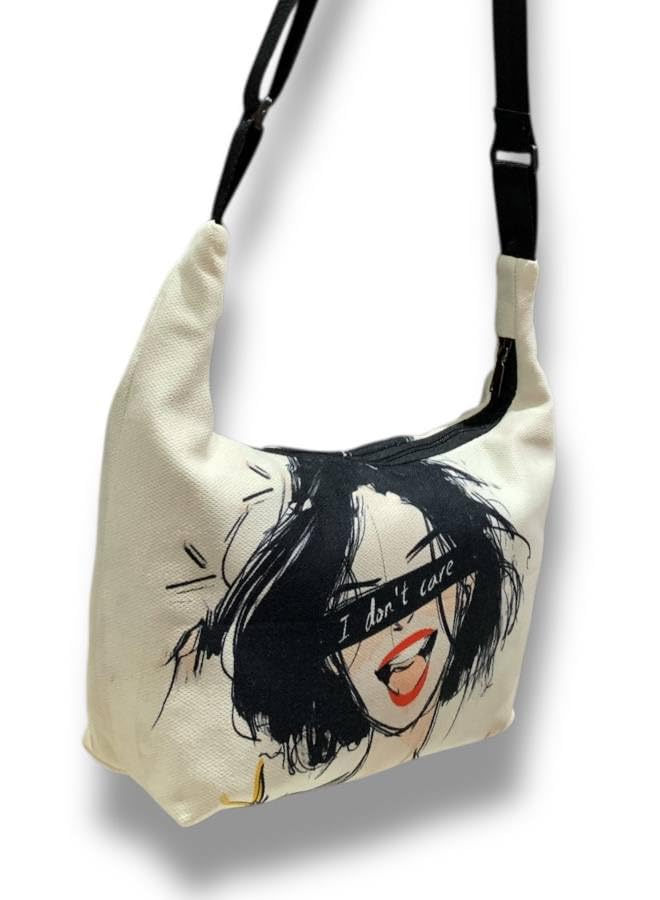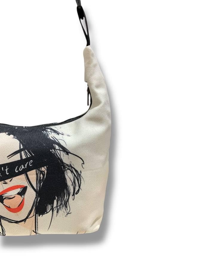 Generic - شنطة كروس بودي نسائية بطبعة فنية مبتكرة – تصميم أبيض أنيق مع رسمة تعبيرية