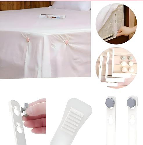 - ضمان الجودة والسلامة: مصنوعة من بلاستيك ABS المتين، تعمل مثبتات الملاءات الخاصة بنا على تثبيت ملاءات سريرك بقوة، مما يضمن بقائها في مكانها بشكل آمن طوال الليل. يمكنك أن تطمئن إلى أن هذه المثبتات مصممة للسلامة والموثوقية، مما يزيل الحاجة إلى تعديلات مستمرة. جرب راحة البال التي تأتي مع مواد عالية الجودة تعطي الأولوية لراحتك.