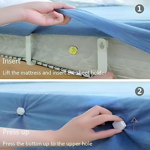 - سهل التركيب: انسى عناء رفع المراتب الثقيلة! تم تصميم مشابك ملاءات السرير الخاصة بنا لسهولة التركيب دون الحاجة إلى تحريك المرتبة في كل مرة تقوم فيها بتغيير ملاءاتك. ما عليك سوى الضغط على الزر لتأمين المثبت في مكانه، مما يجعل الأمر سريعًا وسهلاً لتحقيق سرير مرتب دون أي رفع ثقيل.