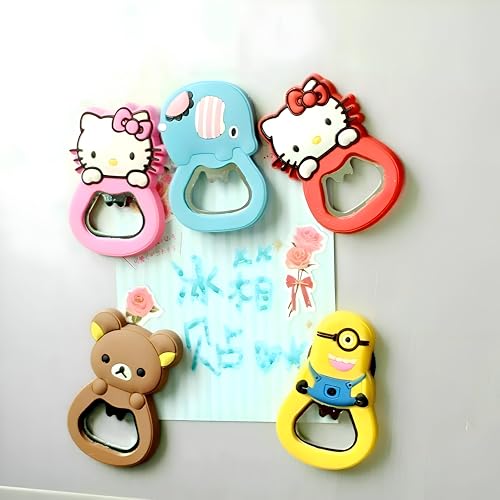 Generic - فتاحة زجاجات بديكور كرتوني مبتكر، فتاحة علب بلاستيكية بضغطة واحدة مع مغناطيس لتثبيتها على الثلاجة للزينة2 قطعه