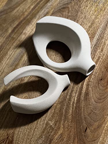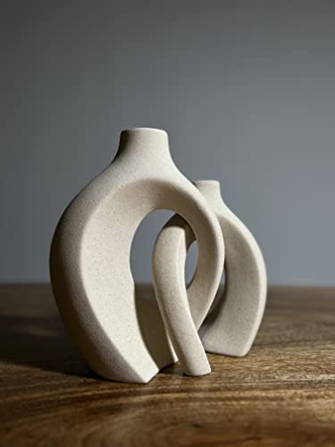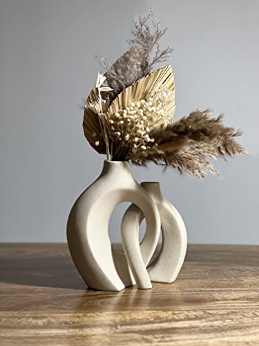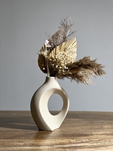 Queen Time - فازة سيراميك عصرية مبتكرة، فازة سيراميك مطفي لعشب البامبات بتصميم بلدان الشمال الأوروبيفازة مجوفة للزهور بتصميم دونات، فازة بتصميم فني بسيط للديكور (الزهور غير متضمنة)