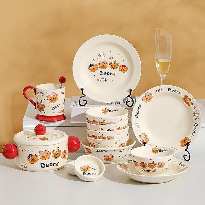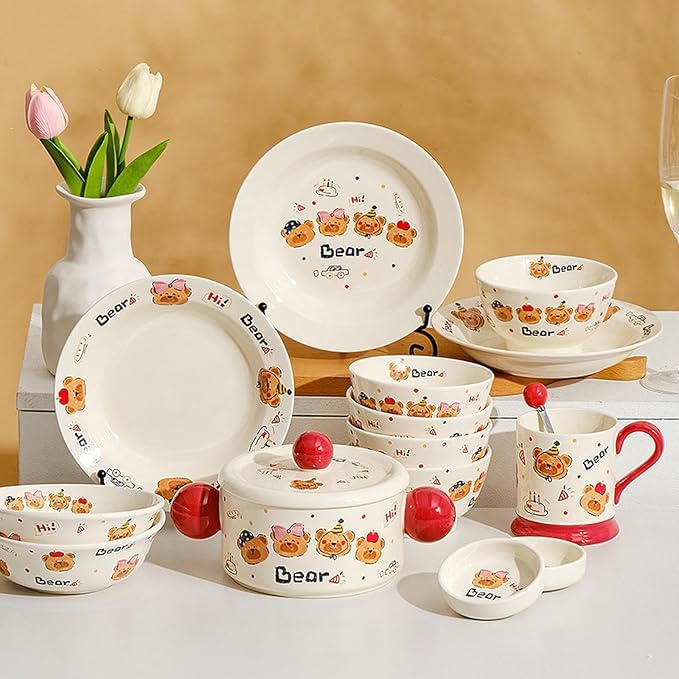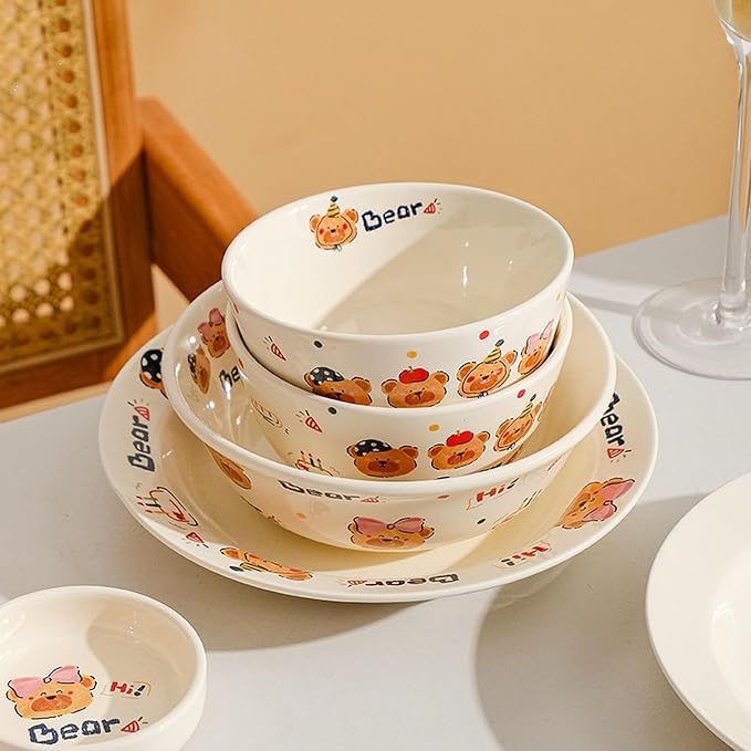 Generic - أدوات مائدة سيراميك دائرية مبتكرة للاستخدام المنزلي، أطباق كرتونية طازجة ولطيفة - أوعية أرز