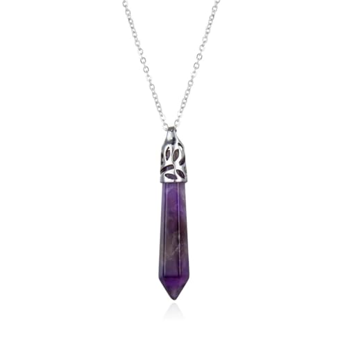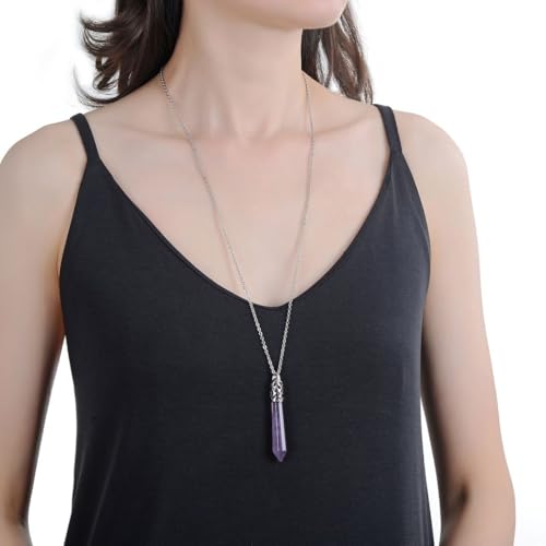 Creative Club - عقد بقلادة من الاحجار الكريمة الطبيعية على شكل رصاصة كريستال كوارتز ريكي شاكرا 26 انش سلسلة مجوهرات للنساء والبنات والرجال وهدايا عيد الميلاد جمشت قطعة واحدة