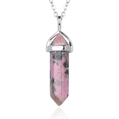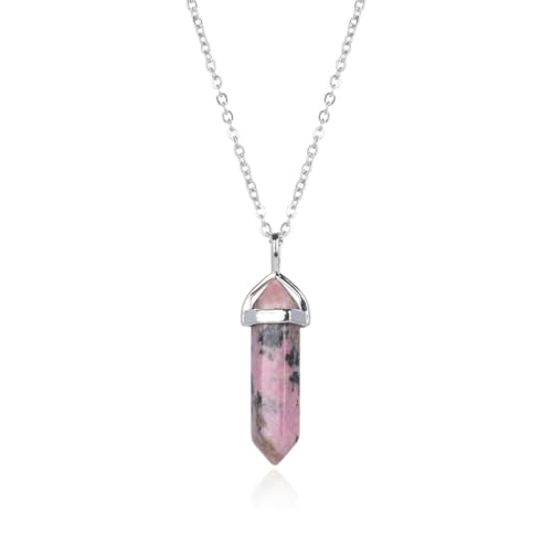 Creative Club - عقد بقلادة متدلية من حجر الرودونيت الكريم الطبيعي الحقيقي للشفاء والشاكرات والريكي وصخور الطاقة 18 انش للنساء والرجال الستانلس ستيل مجوهرات جراحية GGP-C9