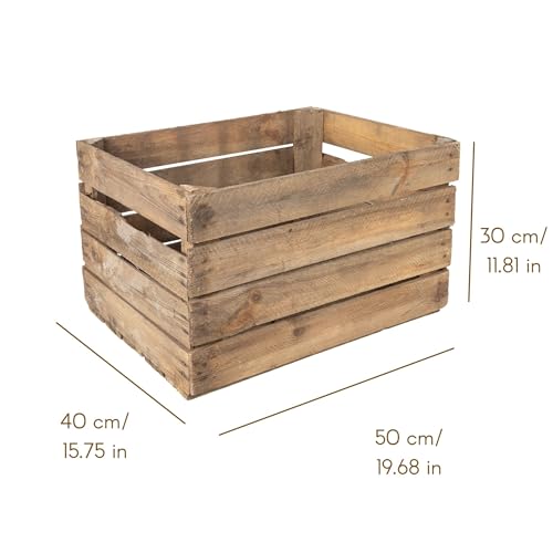 Creative Deco - كريتيف ديكو صندوق خشبي داكن، 50 × 40 × 30 سم، صندوق فاكهة قديم، صندوق خشبي عتيق، مثالي لحصاد الفاكهة وحصاد الخضروات وصندوق النبيذ، صندوق تخزين