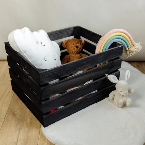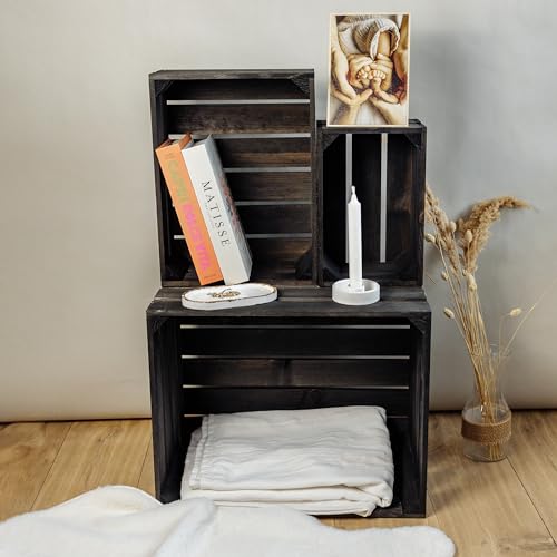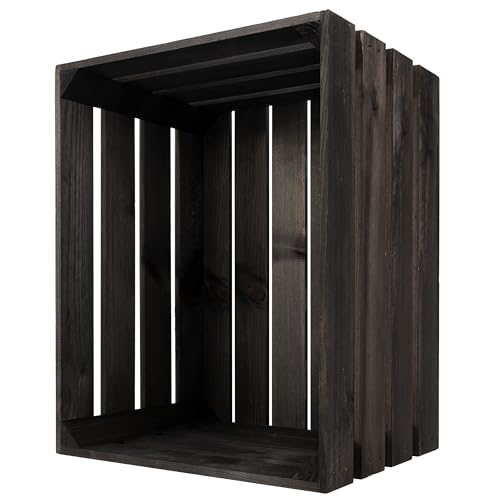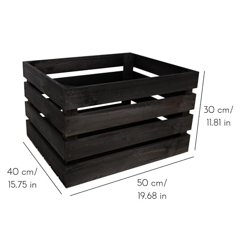 Creative Deco - كريتيف ديكو صندوق خشبي مزخرف من الخشب، اسود، 50 × 40 × 30 سم، مصقول، صندوق فاكهة، صندوق نبيذ، صندوق تفاح، مثالي كصندوق هدايا، صندوق ألعاب، صندوق تخزين