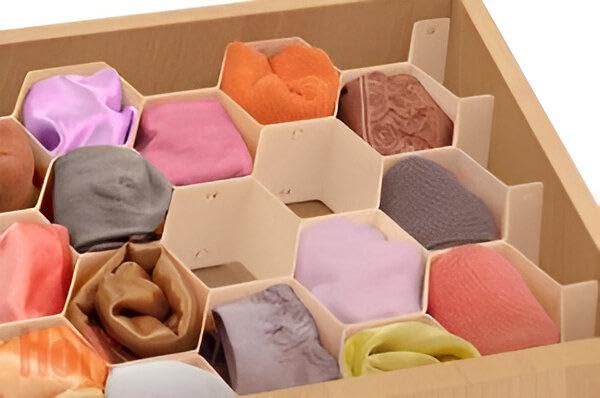 - 3. سهولة التركيب: يتميز منظم الأدراج على شكل قرص العسل الخاص بنا بهيكل متشابك لسهولة التجميع والتفكيك، مما يتيح لك التحكم في مجموعة متنوعة من الأحجام والمقصورات حسب الحاجة. كما أنه لا يشغل مساحة تخزين كبيرة عند عدم استخدامه.
