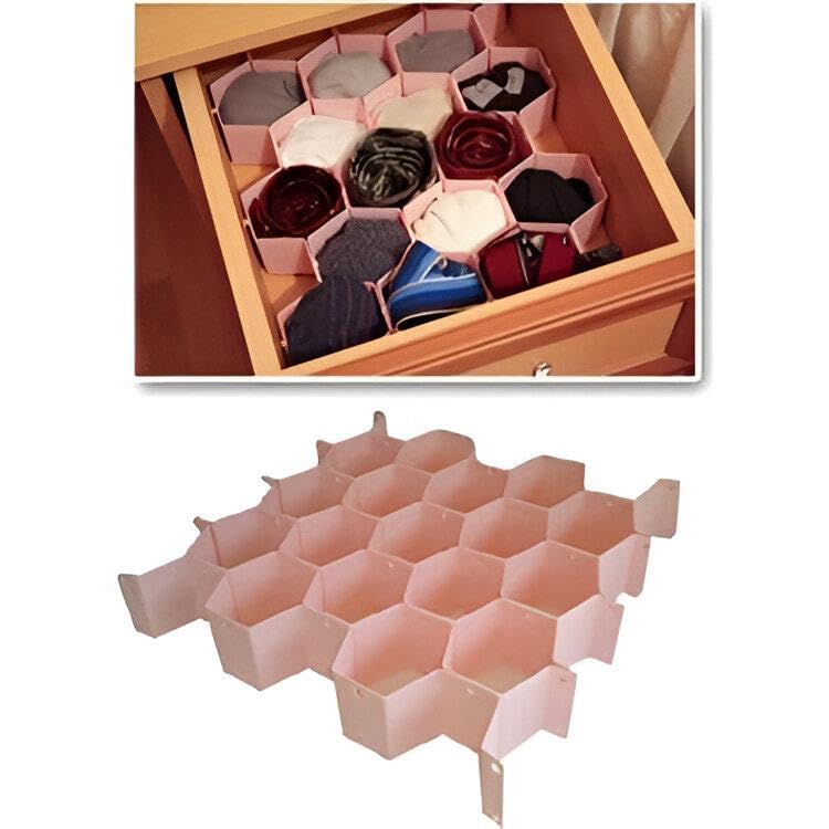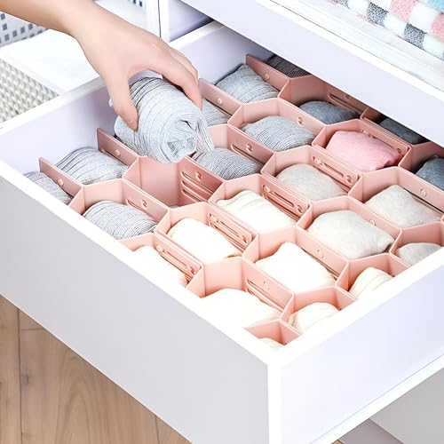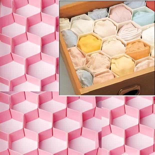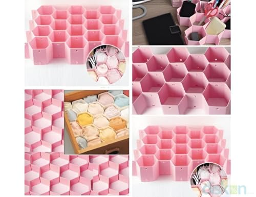 Generic - مقسمات أدراج مبتكرة - تصميم قرص العسل القابل للتعديل من 8 قطع لحلول التخزين التي يمكنك صنعها بنفسك، مثالية لتنظيم الملابس الداخلية والربطات ومنتجات التجميل باللون الوردي الجميل (4 منظم)