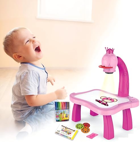 Generic - مجموعة رسم مبتكرة - جهاز عرض رسم جذاب مع طاولة صغيرة للأطفال، يتضمن الضوء والموسيقى، مصمم للأعمار من 3 إلى 8 سنوات، ممتاز لتعزيز الإبداع واللعب