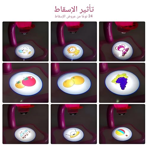 - هذه اللعبة الذكية والممتعة للرسم تضم جهاز عرض عالي الجودة يعرض أنماطًا متنوعة ليقوم الأطفال بتتبعها وتلوينها. مع ميزة التعديل بزاوية 360 درجة لزيادة الوضوح، تجعل من السهل جدًا للأطفال إنشاء أعمالهم الفنية. بمجرد إطفاء الأنوار واستخدام جهاز البروجكتور، يمكن للأطفال الانغماس في اللعب الإبداعي بينما يتعلمون تحسين مهاراتهم في الرسم والتلوين في بيئة ممتعة.