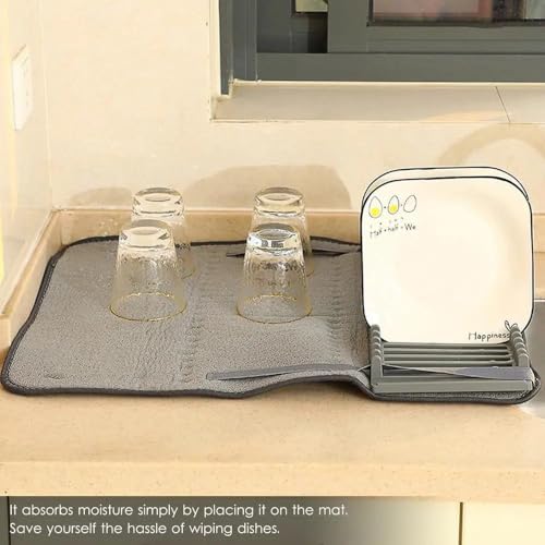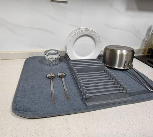 Generic - مجفف أطباق مبتكر قابل للطي مع قاعدة ماصة من المايكروفايبر لتجفيف الصحون والأواني والملاعق، تصميم عملي وأنيق للمطابخ العصرية