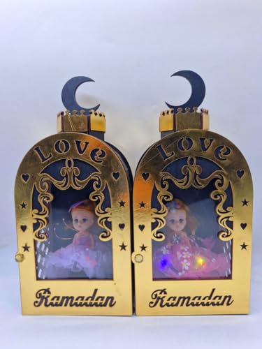 LC - Creative Luxury Wooden Lantern with Elegant Doll Inside with Gilded Door Opens and Closes to Give You a Touch of Luxury with Charming Sound and Light Effects Add Festive Atmosphere (Am)