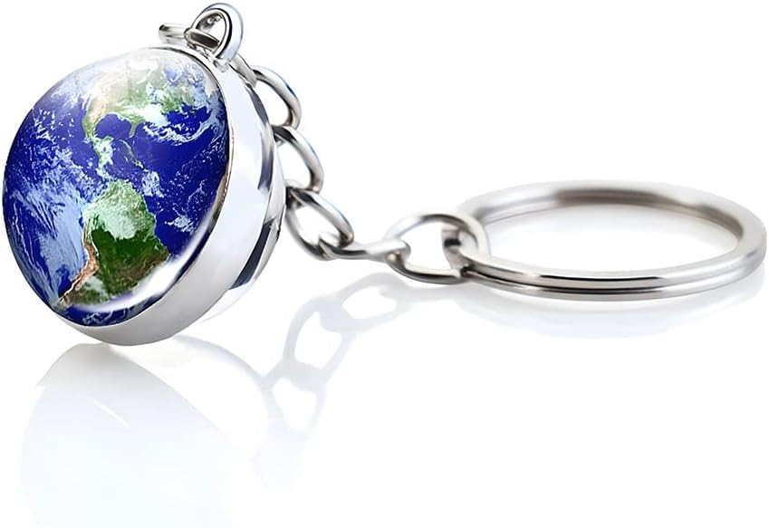 fashion mania - سلسلة مفاتيح بدلاية ابداعية على شكل ارض، سلسلة مفاتيح كريستال رائعة تتوهج في الظلام بتصميم دائري مزدوج الجوانب، مقاس واحد