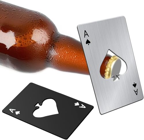 fashion mania - فتاحة زجاجات مبتكرة بتصميم بطاقات بوكر من الفولاذ المقاوم للصدأ، بتصميم محمول بحجم بطاقة الائتمان