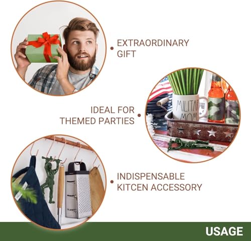 - 【تصميم جندي فريد】تتميز فتاحة زجاجات الجندي الإبداعية هذه بتصميم رجل الجيش المرح، مما يضيف لمسة مرحة إلى تجربة الشرب الخاصة بك. يبرز شكل رجل الجيش المعدني في الحفلات، مما يجعله بداية محادثة للأصدقاء والضيوف.