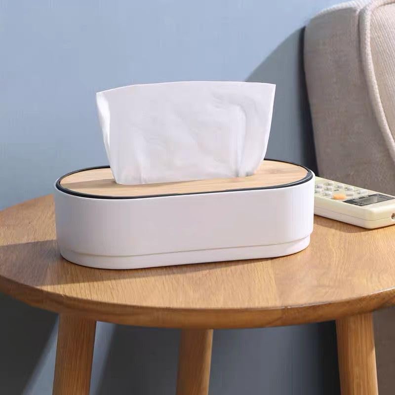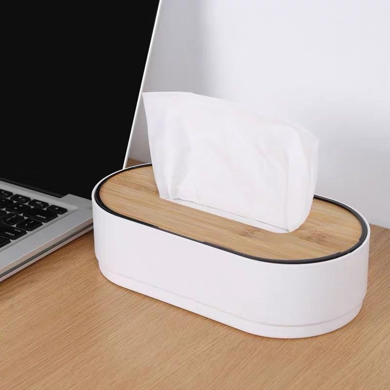 Generic - صندوق مناديل إبداعي بتصميم إضافي قابل للرفع لغرفة المعيشة وغرفة النوم صندوق ورقي لسطح المكتب بغطاء خشبي وصندوق مناديل للوجه عنبر منزلي (ابيص)