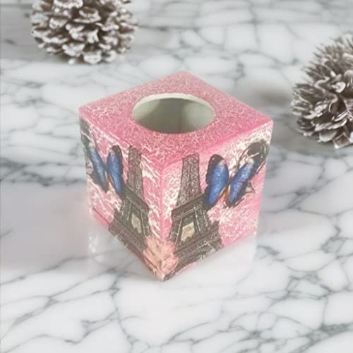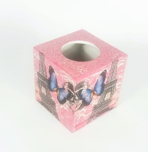 Generic - علبة مناديل ورقية انيقة من كريتيف تاتش، صندوق خشبي مربع 14 × 14 × 15 سم، فن ديكوباج مصنوع يدويا