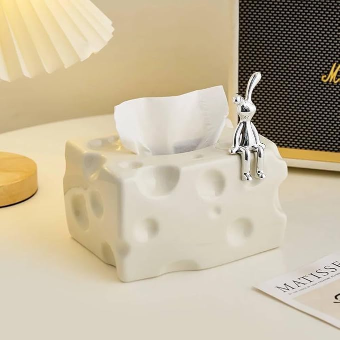 Generic - علبة مناديل بورسلين بتصميم مخصص ومبتكر، مع حامل مناديل على شكل أرنب جالس وكروي للطاولات