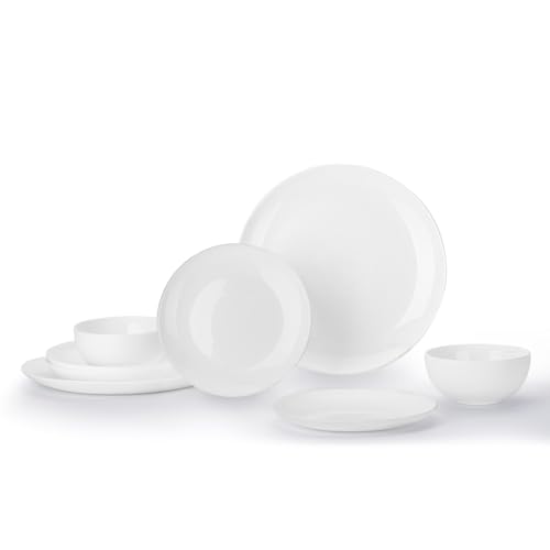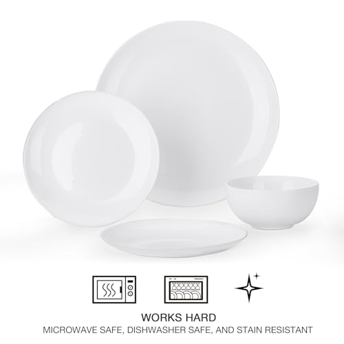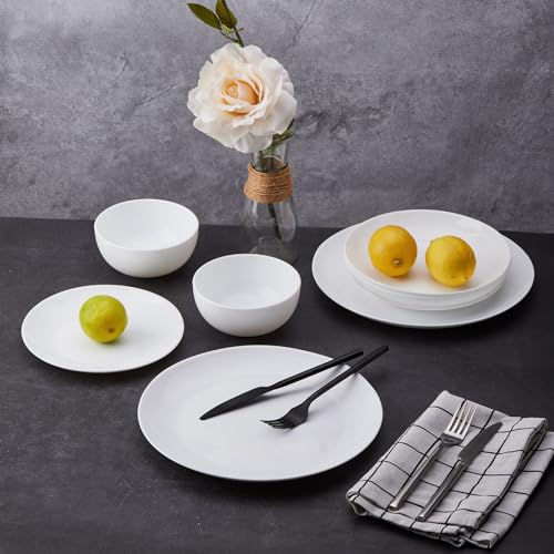 - [هدايا مثالية]: طقم العشاء الزجاجي الأبيض الفاخر الكامل يمثل الهدية المثالية للانتقال إلى منزل جديد. مثالي للأزواج الجدد والمنازل الجديدة والبدايات الجديدة. أطباق المطبخ الرائعة هي جزء من أي أساسيات شقة جديدة.
