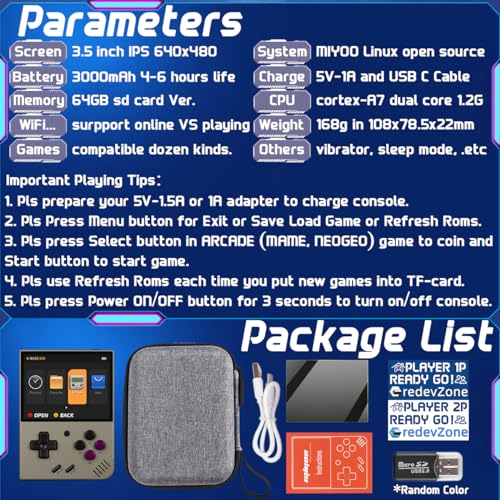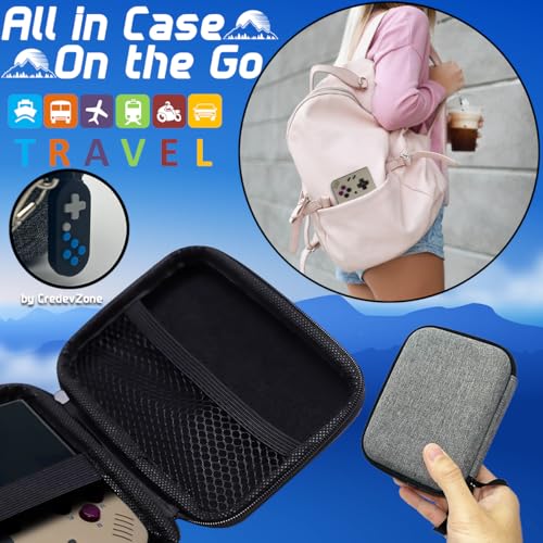 CredevZone - جهاز تشغيل ألعاب الفيديو الرقمية محمول باليد ميو ميني + من كريدف زون، وحدة تحكم ألعاب فيديو رترو محمولة قابلة لإعادة الشحن، نظام كلاسيكي رترو رمادي GB مع حافظة