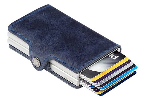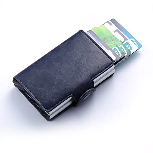 Generic - حامل بطاقات الائتمان مع حجب تقنية تحديد الهوية بموجات الراديو محفظة بمشبك نقود جلد منبثق للرجال مزدوجة لحمل كاجوال كحلي