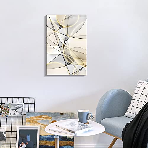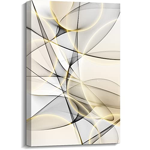 Creoate - كريوات لوحة فنية جدارية باللونين الاسود والذهبي والابيض، لوحة قماشية تجريدية مطبوعة فنية عصرية بلون اسود وذهبي لديكور الحائط لغرفة النوم