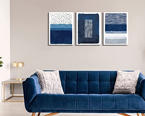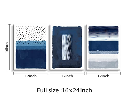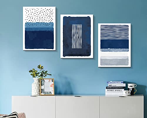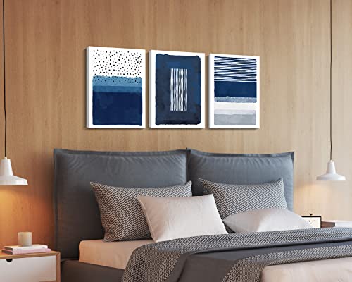 Creoate - لوحة فنية جدارية من القماش لديكور غرفة المعيشة من 3 قطع بتصميم تجريدي باللونين الأزرق والأبيض، مجموعة أعمال فنية مؤطرة لديكور غرفة النوم من كريوات، لون أزرق كحلي، مقاس 30 × 41 سم