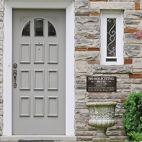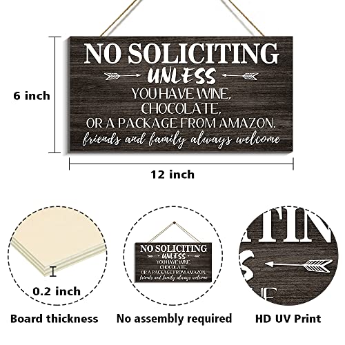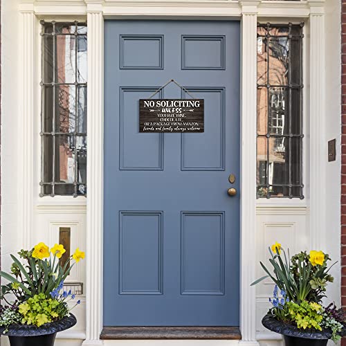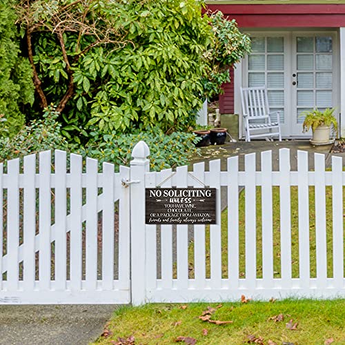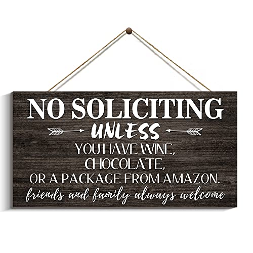 Creoate - لافتة بطبعة عبارة No Soliciting للمنزل من كريوت، لافتة ممر مرحة لديكور باب الشرفة، لافتة معلقة على الحائط بلون بني للمنزل الريفي في الهواء الطلق، مقاس 15 × 30 سم