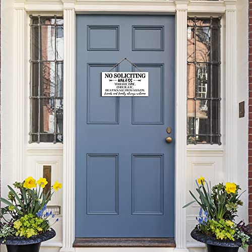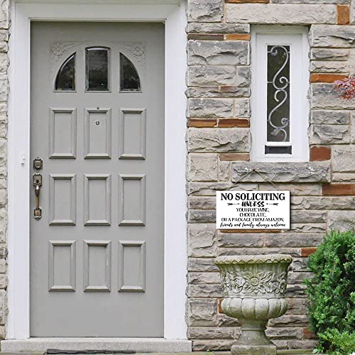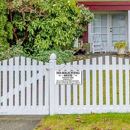 Creoate - لافتة بطبعة عبارة No Soliciting للمنزل من كريوت، لافتة ممر مرحة لديكور باب الشرفة، لافتة معلقة على الحائط بلون أبيض للمنزل الريفي في الهواء الطلق، مقاس 15 × 30 سم