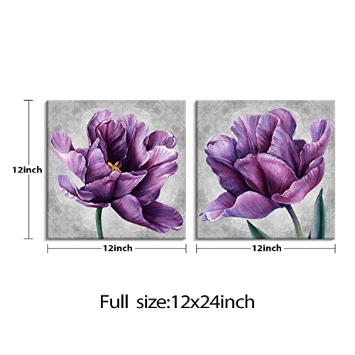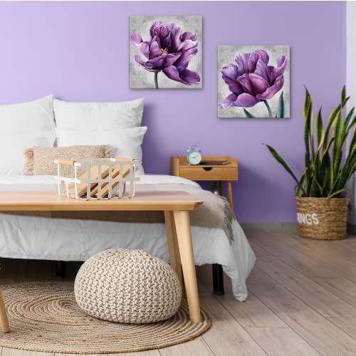 Creoate - 2 لوحة حائط فنية قماش بتصميم زهرة باللون الأرجواني للديكور من كريوات