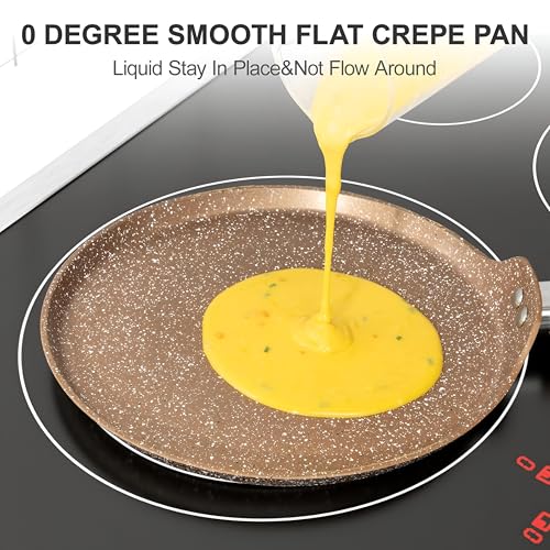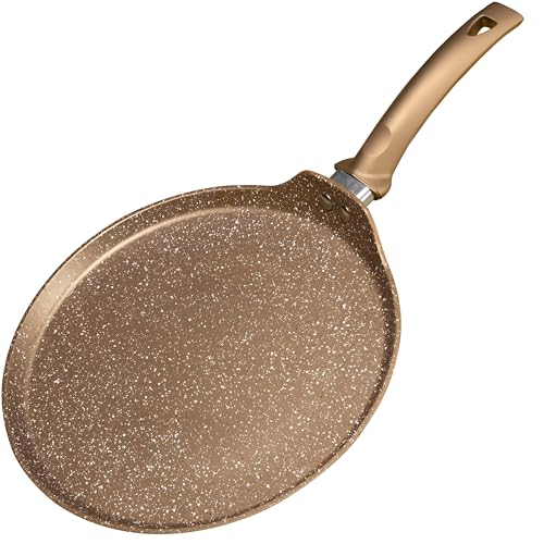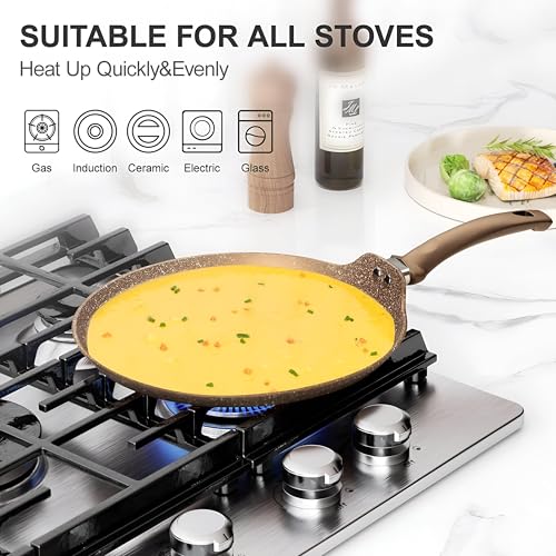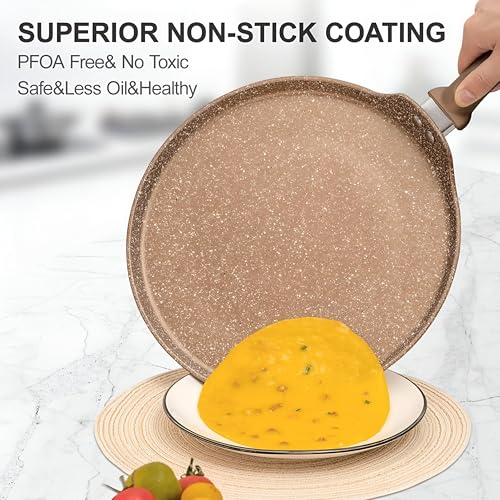 Generic - مقلاة كريب - مقلاة مسطحة مطلية بالجرانيت غير لاصقة مصممة للفطائر والتورتيلا والدوسا والروتي مع مقبض ممتاز يحافظ على البرودة، امنة للحث وخالية من حمض بيرفلورو الاوكتانويك لاحتياجات الطبخ الصحية