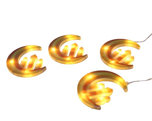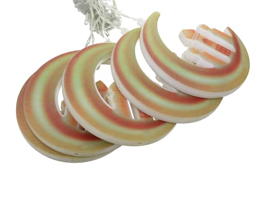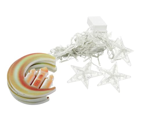 Generic - شريط إضاءة دافئة مزين بدلايات بتصميم هلال ونجوم، مناسب لديكور رمضان والحفلات الإسلامية، متعدد الألوان، 5 قطع مع جهازي تشغيل